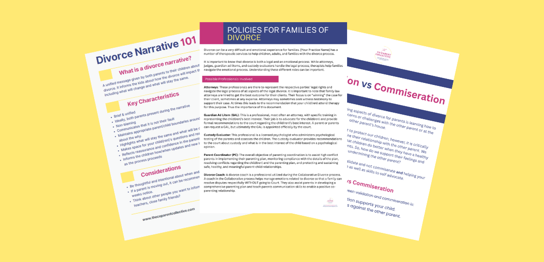 The Co-Parent Collective provides compassionate, expert-driven education and resources to help both parents and professionals navigate the complexities of separation and divorce in a way that protects and prioritizes children’s well-being.